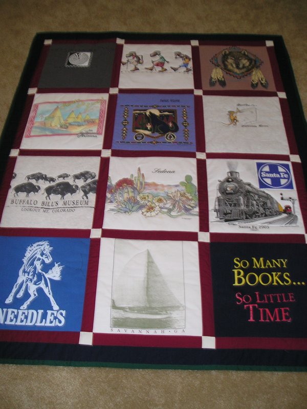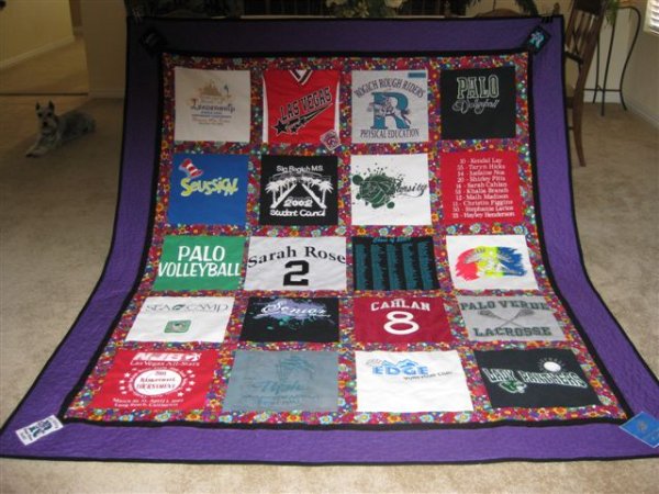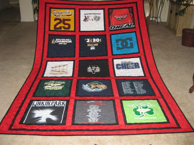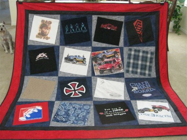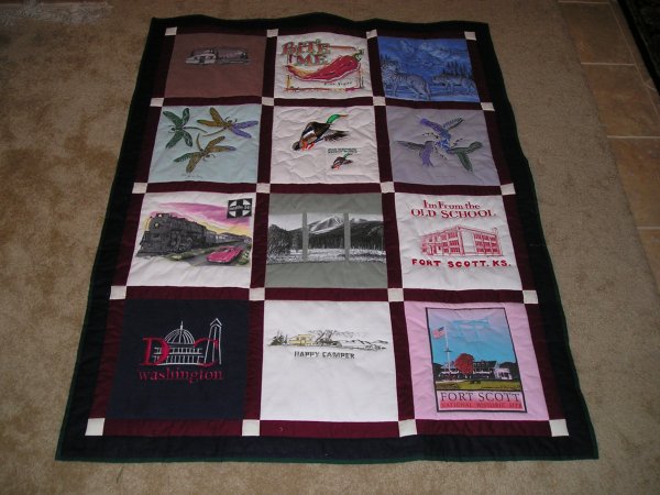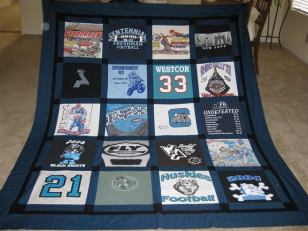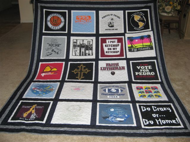 The fronts need to be at least 16" square and the picture should not be more than 14" square for the standard T-shirt quilt .